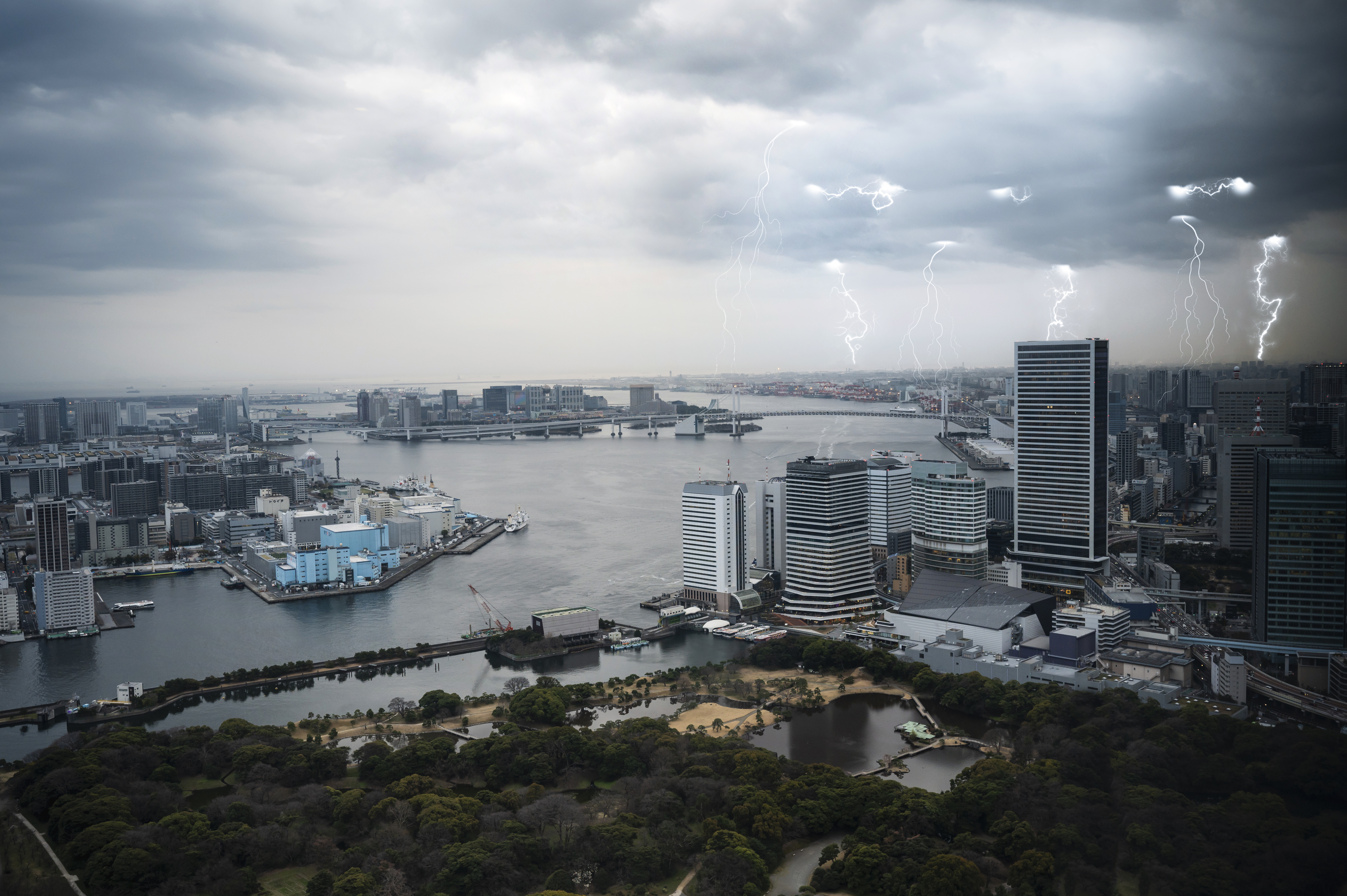 Ночью супертайфун «Рагаса» прошёл над Гонконгом и движется в сторону материкового Китая. |